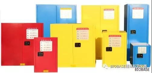 为了方便辨认和识别,经常用不同颜色的易燃、可燃和腐蚀性液体化学品进行存储,黄色表示可燃液体防火安全柜 红色表示易燃液体防火安全柜,蓝色表示弱腐蚀性可燃液体
